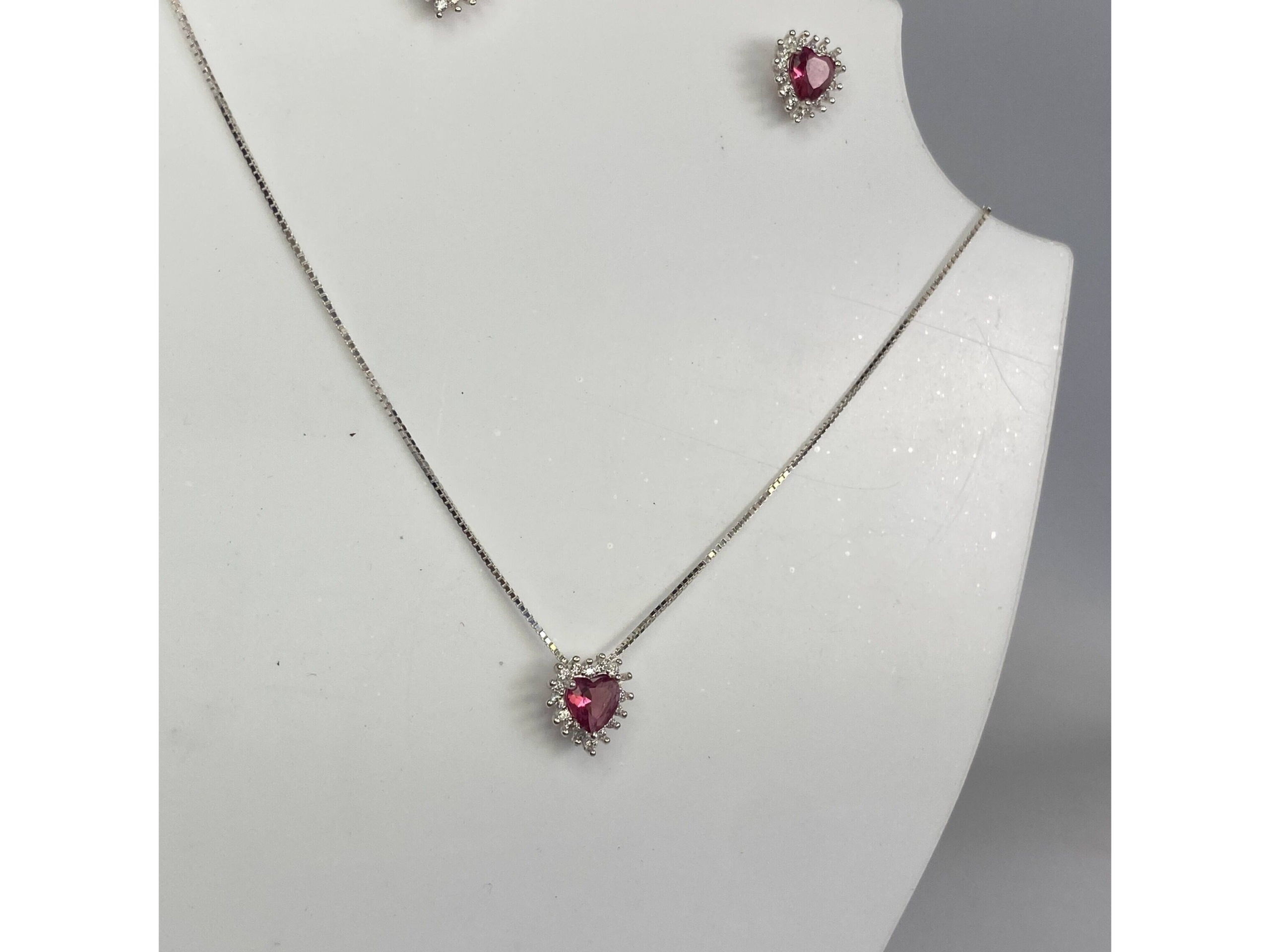 Kit Colar e Brinco Cravejado rosa em Prata 925